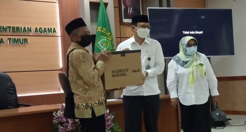 Dalam arahanbya, Kabag TU Kemenag Jawa Timur bersyukur bisa bersilaturahmi dengan kepala madrasah se Jawa Timur. Pihaknya juga mengucapkan selamat kepada para kepala madrasah yang hadir karena telah kelimpahan berkah dari Kemenag Pusat. Menurutnya Kanwil Kemenag Jawa Timur hanya mendapatkan amanah dari Kemenag Pusat untuk menyalurkan dan mendistribusikan bantuan Server dan Jaringan CBT tahun anggaran 2021. Madrasah penerima sepenuhnya adalah keputusan Direktorat KSKK Madrasah Kemenag Pusat.