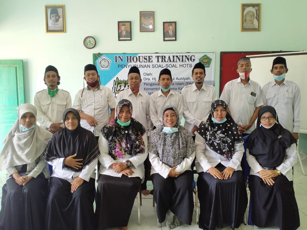 “Di era abad 21 ini guru dituntut untuk bisa mengajar dengan inovasi-inovasi yang mengajak siswa berpikir tingkat tinggi. Tidak kalah penting pula kemampuan guru dalam menyusun soal. Oleh karena itu guru perlu terampil menyusun soal yang bagus yaitu soal yang membuat siswa berpikir tingkat tinggi dalam menjawab soal-soal. Maka dari itu, madrasah membekali keterampilan tersebut lewat In House Training ini.” Kata, Dra. Hj. Lathifatul Auniyah, M.Pd menuturkan.
